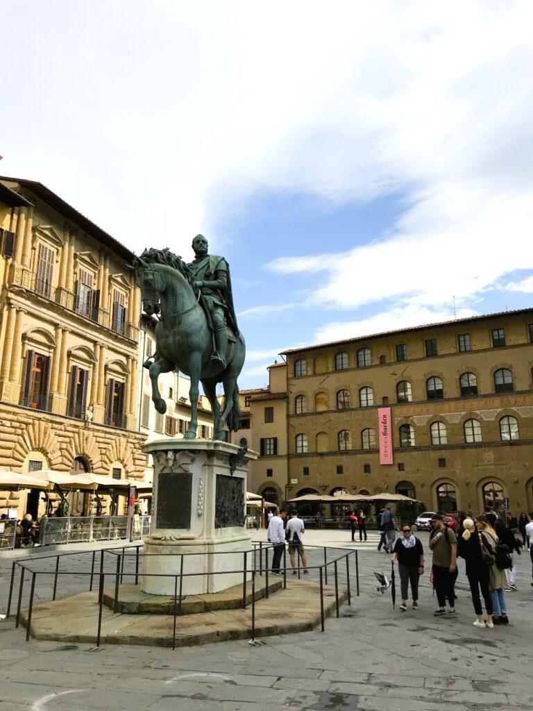 Центральна площа Флоренції – площа Сеньйорії є протягом століть політичним та соціальним центром міста. Тут розташовані Палаццо Веккйо — колишня резиденція правителів міста, Лоджія Ланчі — неймовірна галерея під відкритим небом зі скульптурами доби Відродження, серед яких копія відомої скульптури “Давид” Мікеланджело, оригінал якої знаходиться в Галереї Академії, та фонтан Нептуна.